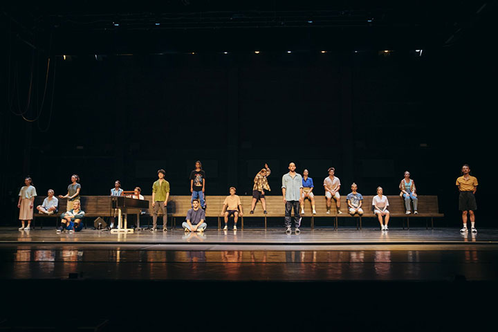 Eine bühnenbreite Sitzbank, ein Cembalo davor. Die 16 TänzerInnen des Opera Ballet Vlaanderen und zwei Kinder in ihrer legeren Alltags- und Straßen-Bekleidung bevölkern diesen Lebensraum bereits. Die live interpretierte Cembalo-Musik setzt ein. Die derzeit in Amsterdam lehrende, weltweit konzertierende und unterrichtende, 1973 in Polen geborene Cembalistin Goska Isphording spielt in diesem Stück zwischen 1969 und 2021 entstandene zeitgenössische Kompositionen für Cembalo, die in ihrem Duktus so gar nichts mit dem lieblich-süßlichen, barocken „Geklimper“, das gewöhnlicher Weise mit diesem Instrument assoziiert wird, zu tun haben.