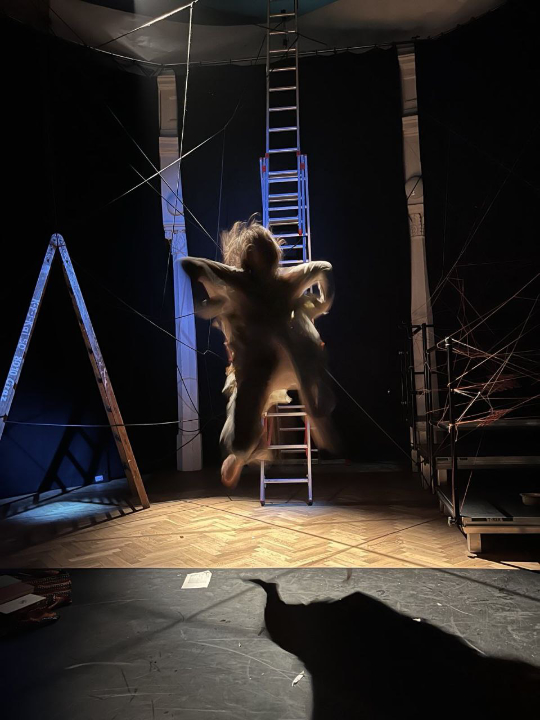Eben diese aktuell besonders wichtige Thematik rankt auch um und im Solo Thora Hohbergs „Vom Finden eines Buches, bedruckt mit Ungeschriebenem“. Idee, Choreografie/Regie, Performance, Bühnenbild/bau, Kostüm, Soundtrackts, Texte: die Solistin.