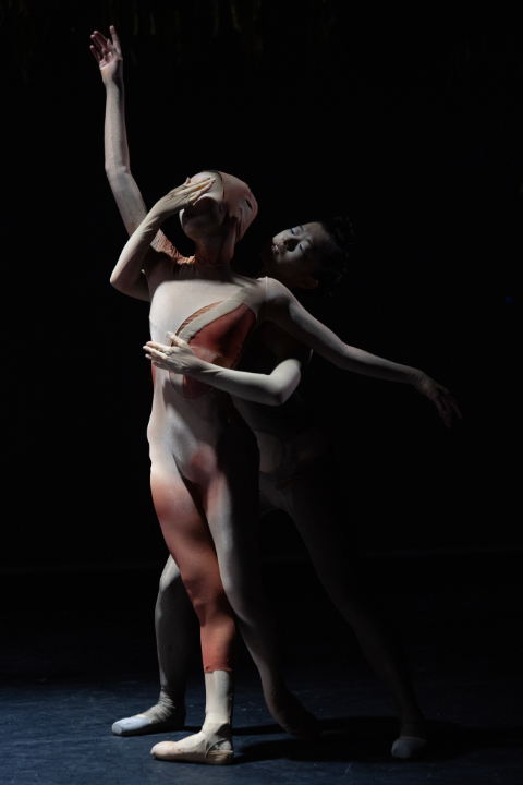 Auch die Texte für die Libretti der vier Teile wurden von unterschiedlichen Autor*innen geschrieben. Sie alle sind von den brennendsten Fragen unserer Zeit getrieben: Wie wird die technologische Entwicklung unsere Welt verändern? Wie die Klimakrise? Wie bauen wir Berührung und Beziehungen auf, wenn wir uns doch zunehmend isolieren? Wie wird das Verhältnis von Robotern und Menschen zueinander sein? In seiner Choreografie wagt sich Binet auf den feinen Grad zwischen menschlicher Realität und einer Welt der künstlichen Intelligenz. Emotionen werden auf eine Ebene gehoben, auf der sie nicht mehr unmittelbar gelesen werden können. Die Künstlichkeit der klassischen Tanzsprache leistet dieser Ambivalenz Vorschub und wird von Binet geschickt eingesetzt. Die zwölf jungen Tänzer*innen setzen diese mit überwiegend emotionsloser Mimik und einwandfreier Technik um. Die löchrigen Kostüme von Thomas Tait suggerieren eine dystopische Verortung – nicht alle Aussparungen in den Trikots wirken sich vorteilhaft auf die Figur der Tänzer*innen aus –, die von den stellenweise eingesetzten Spiegeln episch-cineastisch (Bühne: Shizuka Hariu) überhöht wird.