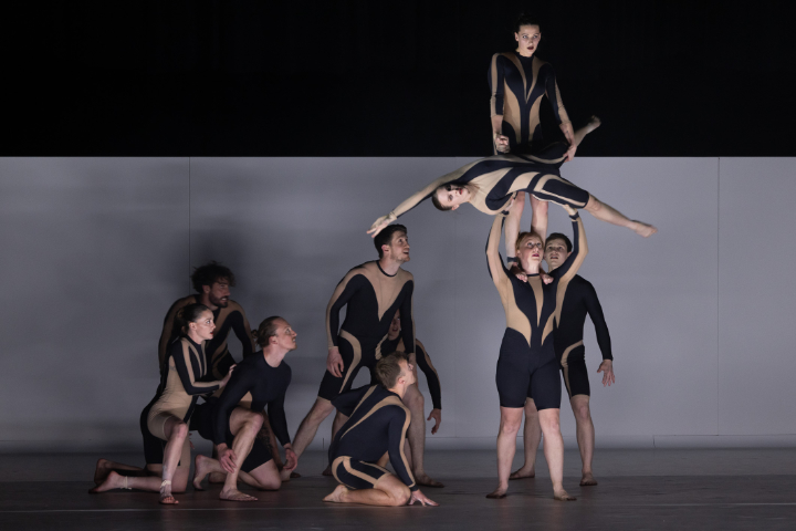 Während sich diese Produktion in einem einfachen, sich nur leicht wandelnden Bühnenbild abspielt, dient der australischen Gruppe CIRCA lediglich eine langgezogene weiße Wand unverändert als diskret unterstreichender Hintergrund. Unterstreichend das, was diese Akrobaten und Akrobatinnen in ihrer zwei-aktigen zirzensischen Choreografie „Wolf“ während dichter 100 Minuten (1 Pause) leichtfüßigst auf die Bühne zaubern. Ihre Spielwiese ist ihnen ihr eigener Körper, das in ihm und aus ihm aktivierte, akrobatisch-künstlerisch-tänzerische Potential. All dies im Fluss einer scheinbar naturgegebenen Geschmeidigkeit, ergänzt durch eine ebensolche ‚Schwerelosigkeit‘, wie sie selten zu erleben ist. Und dass derartige Würfe, Dreifachtürme, Hebungen, Umschlingung, Dehnungen, Sprünge, Drehungen, Türme zu sechst… in schier unbegrenzten Variationen tatsächlich, also in Realität zu erleben sind, ist immer wieder unbegreiflich, weil nicht erklärbar.