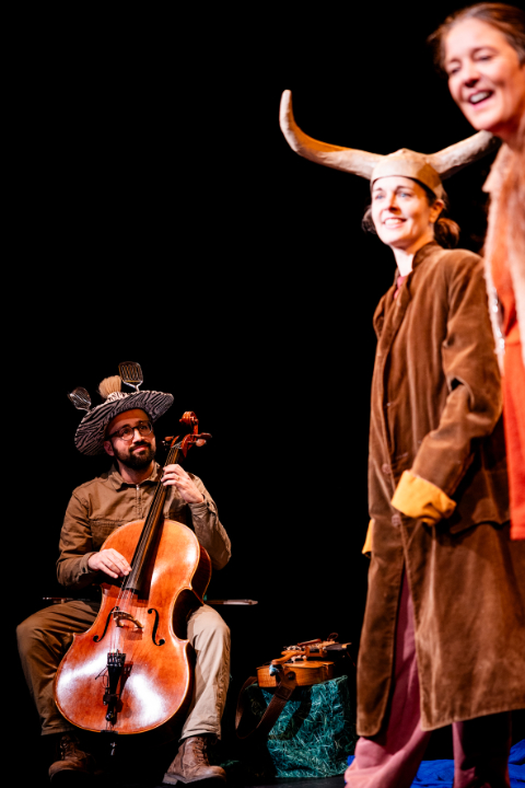 Begleitet werden die beiden Performerinnen unaufdringlich und stärkend von Carles Muñoz Camarero am Cello und an der Nyckelharpa (Schlüsselfidel), einem mittelalterlichen Streichinstrument mit ästhetisch kraftvollen Tönen.