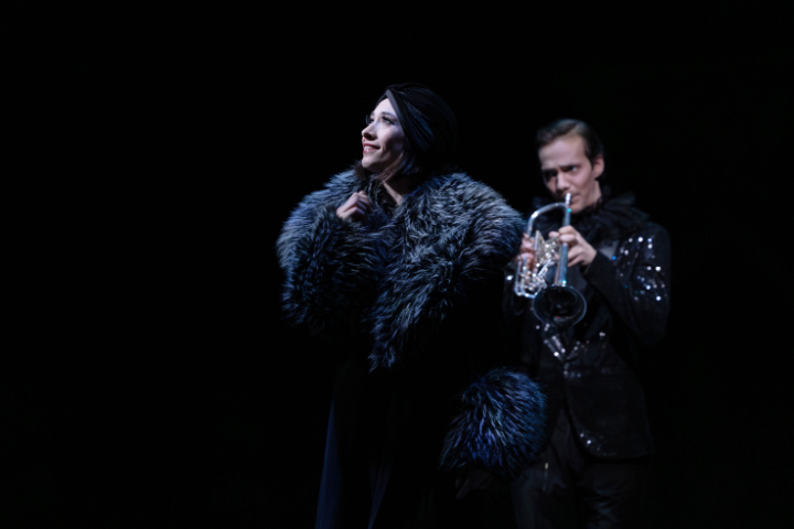 pulchinella 41 webDer Strawinsky-Abend, der die Geraer Georgi-Feierlichkeiten im Februar eröffnete, beginnt mit einer neuen „Pulcinella“-Inszenierung, und die wiederum beginnt in Geras Küchengarten. Die Grünanlage verbindet das 1902 eröffnete Theater von Heinrich Seeling (in dem, schon seinerzeit selten und inzwischen einzigartig, unter demselben Dach ein Theater- und ein separater Konzertsaal untergebracht sind) mit der Orangerie, in der heute die städtische Kunstsammlung residiert (samt einer eindrucksvollen Ausstellung über Otto Dix), und führt weiter bis zur Brücke über die Weiße Elster, an deren gegenüberliegendem Ufer das Elternhaus von Otto Dix steht. In Arshak Ghalumyans „Pulcinella“ geht Yvonne Georgi anno 1925 durch den Küchengarten und sinniert dort über das Stück (das die historische Yvonne Georgi 1926 in Gera zur Premiere brachte, mit ihr selbst – „libellengleich“, wie die Kritik es beschrieb - in der Rolle der Pimpinella). Wir sehen ein Spiel im Spiel und sehen Georgi dabei zu, wie ihre Ideen in der Arbeit mit ihrem Ensemble Tanz werden, choreographiert – Georgis Choreographie ist verloren – von Arshak Ghalumyan.pulchinella 47 web